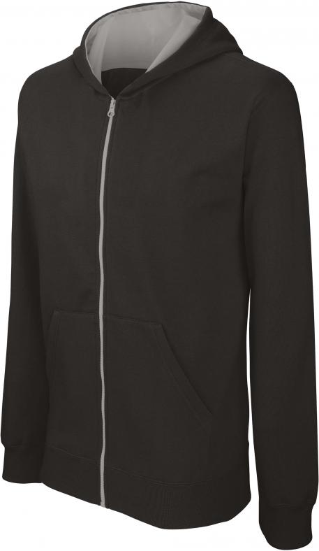 Denna 80% bomullskammade och 20% polyesterfodrade fleece har ribbstickad ärm- och klädskant, en fodrad och kontrasterande huva, en kontrasterande dragkedja och ett öronhålstråd i kängfickan och halsen. Du kommer att älska komfort och stil av denna kläder!