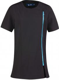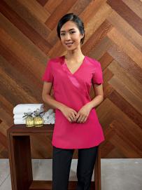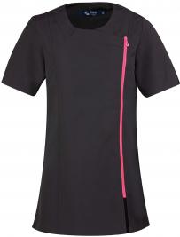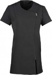Denna tunika är tillverkad av 100% polyester, perfekt för skönhets- och spa-professionella. Den har korta ärmar och en asymmetrisk dragkedja framtill. Sidoslitsar och prinsesssömmar ger den en elegant och feminin look. Den är lätt att sköta och rengöra.