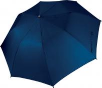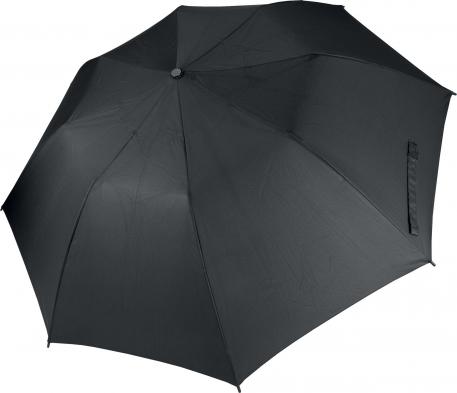 Denna tvådelade fällbara golfparaply är perfekt för dina sportaktiviteter. Den mäter 25 / 63,5 cm och öppnas automatiskt. Fiberglasstjälkar och svart metallstång ger styrka och hållbarhet. Polyester 190T pongétyget är slitstarkt och hållbart. EVA-handtag med plastknapp är ergonomiskt och bekvämt. Paraplyet levereras med en fodral med självhäftande band.