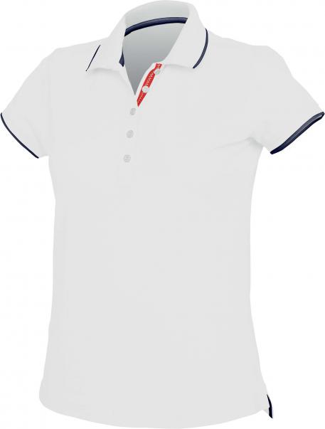Denna pikétröja i 100% bomull har en ribbstickad krage med kontrasterande kantband ovan och nedan (förutom för färgen vit: inget kontrast under kragen). Den har också en kontrasterande renhetstrip vid halsringningen och sidoslitsarna samt en fantasibutton och fem knappar. Ribbstickningen har också en kontrasterande kant nedtill på ärmarna och en dubbel söm nedtill. Kragen, förstärkt baktill, kan bäras upp eller ned. Denna piké är det perfekta valet för alla moderna och eleganta looks.