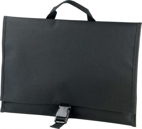 Denna dokumentport i polyester 600D med PVC-beläggning erbjuder en säker stängning med sin krok och praktiska handtag på toppen. Det är perfekt för resor och förvaring av dina dokument.