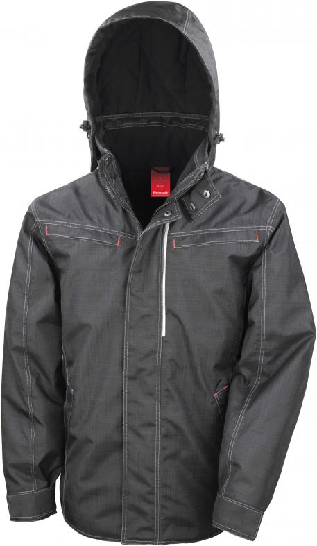 Denna 100% polyester ytterjacka är perfekt för att möta oväder. Den är delvis fodrad med fleece och vadderad med 200g / m² för att hålla dig varm. Dess vind- och vattentät 3000 mm med termosvetsade sömmar och andningsförmåga 2000 g / m² / 24h ger dig optimal skydd. Den är utrustad med en 2-vägs dragkedja med färgbytena dragkedjor som medföljer, samt 4 utvändiga dragkedjefickor och 2 invändiga dragkedjefickor. Ett D-ring är närvarande i vänster bröstficka. Dess höga krage och avtagbar huva ger dig extra skydd. Dess längre ryggstycke och justerbara manschetter med självhäftande kardborrband ger dig extra komfort. Dess knappstängd stormflik, kontrasterande förstärkta sömmar och retroreflekterande detaljer kompletterar denna modell. En bärrem är sydd inuti kragen. Missa inte denna 100% polyester ytterjacka för att möta oväder med stil och komfort!
