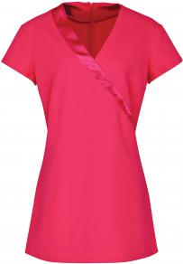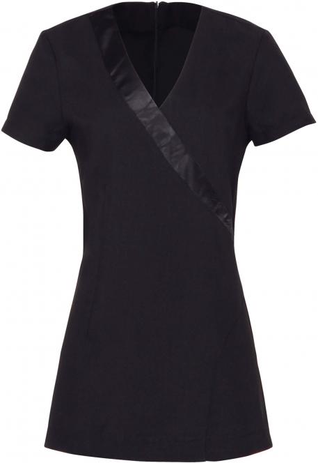 Denna snygga och eleganta tunika är tillverkad av 100% polyester. Den har en ton-i-ton satinband från axeln till bysten för en klädsel och ett V-hals. Den smickrande passformen med bystfickor och sidofickor ger en feminin och slank siluett. Prinsessömmarna ger en sofistikerad touch och dragkedjan baktill ger en perfekt passform. Lätt att sköta om och tvättbar i 40°, är denna tunika ett måste för din garderob.