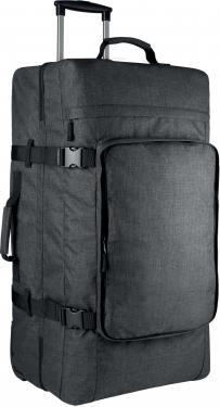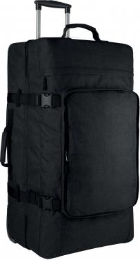 Denna stora trolleyväska med dubbla fack av torsad polyester 600D med PVC-beläggning är perfekt för resenärer. Dess borttagbara frampanel gör det lätt och praktiskt att personifiera den. Njut av detta oumbärliga tillbehör för dina resor!