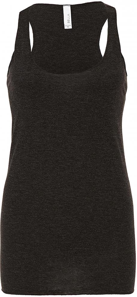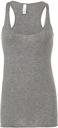Denna ryggsimmare i blandmaterial Triblend består av 50% polyester, 25% ring-spun kammad bomull och 25% rayon. Dess långa passform och sömlösa finish vid hals, axlar och botten ger en elegant look och en känsla av mjukhet och komfort.