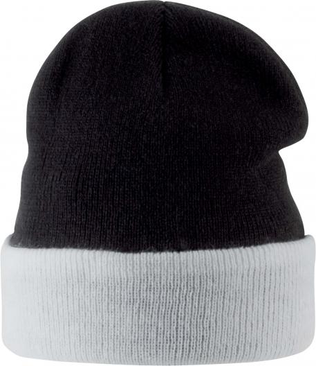 Den här stickade mössan 100% akryl har en kontrastfärgad baksida för en snygg och elegant look.