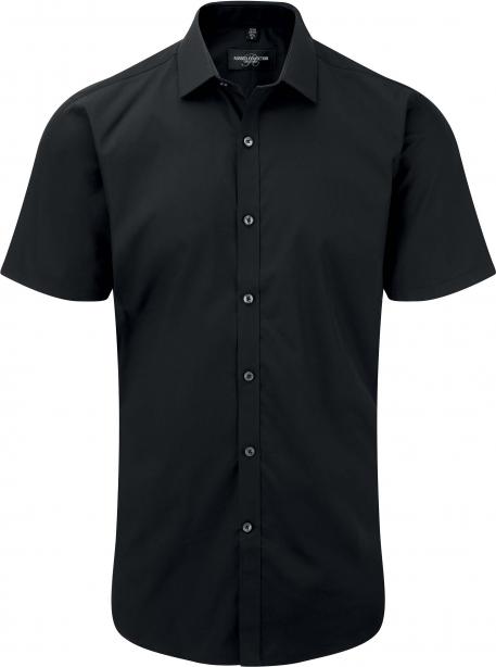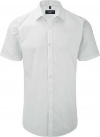 Denna innovativa tyg består av 75% bomull och 25% elastomultiester (Lycra® T400-fiber) som ger en oöverträffad komfort, optimal elasticitet, hållbar passform och exceptionell fukthantering. Med en halvutbredd krage och en kort knäppning har denna skjorta med smal knapphållare och ryggfållar en smickrande passform som passar din siluett.
