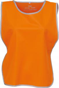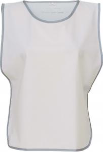 100 % polyester. Reflekterande kant runt hela. 10 cm elasticitet och 10 cm kardborrefäste på vardera sidan för justering av bröstbredden samt bekväm användning. Stort dekorationsomröde fram och bak.